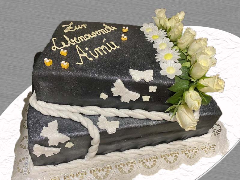 Torte mit schwarz / weiß, mit Rosenblüten, Schmetterlingen,